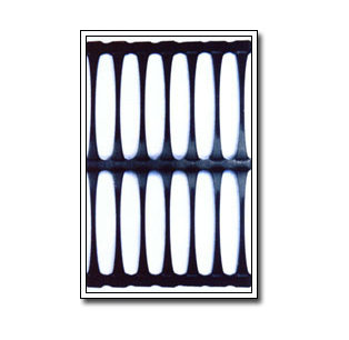 單向拉伸的土工格柵是由高分子聚合物經(jīng)擠出壓成薄板再沖規(guī)則孔網(wǎng),然后縱向拉伸而成。這種過程中使高分子成定向線性狀態(tài)并形成分布均勻、節(jié)點強度高的長橢圓形網(wǎng)狀整體性結(jié)構(gòu)。此種結(jié)構(gòu)具有相當高的拉伸強度和拉伸模量,特別是我公司此類產(chǎn)品更具有高水平的高早期(伸長率在2%—5%)拉伸強度和拉伸模量。給土壤提供了理想的力的承擔和擴散的連鎖系統(tǒng)。該產(chǎn)品拉伸強度大(>150Mpa),適應各種土壤,是目前廣為采用的加筋加固材料。